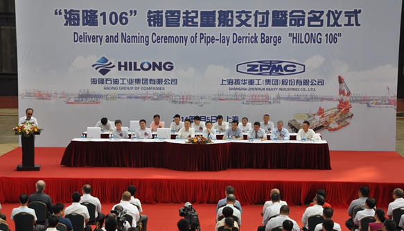 (September 9th, 2014, Shanghai) The offshore pipe-lay derrick barge that Hilong purchased late last year was successfully delivered and formally named “Hilong 106” on September 5th, attesting to Hilong’s bold expansion into the offshore engineering and services sector.