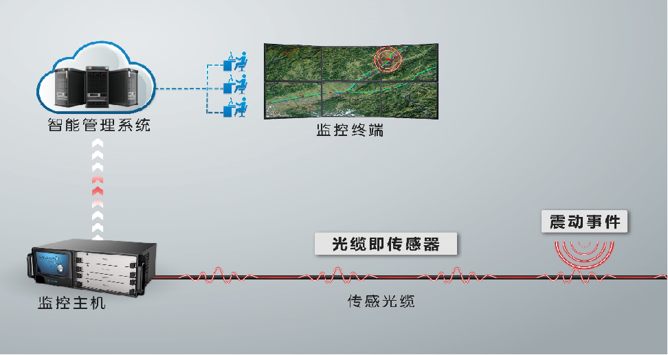 圍繞油氣安全監測需求,自研系列化光纖傳感產品,產品基于瑞利散射光,使用相位敏感光時域反射儀技術(φ-OTDR),來檢測光纖上的振動信號;現廣泛用于道沿線周邊第三方破壞、自然災害所引起的危害事件預警,光纜路由、盤纜及故障點定位,以及清管器跟蹤定位等應用場景。